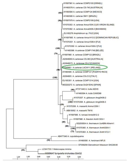 2.1. Phylogenetic Characterisation of Strain A. carterae LACW11