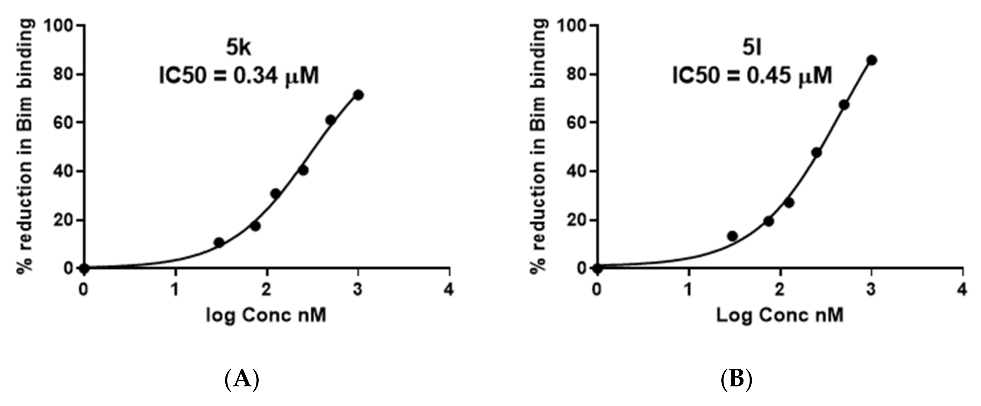 2.2. Compound 5k and 5l Analogues Showed Potent and Selective Growth-Inhibitory Anticancer Activity on Bcl-2-Expressing Cell Lines