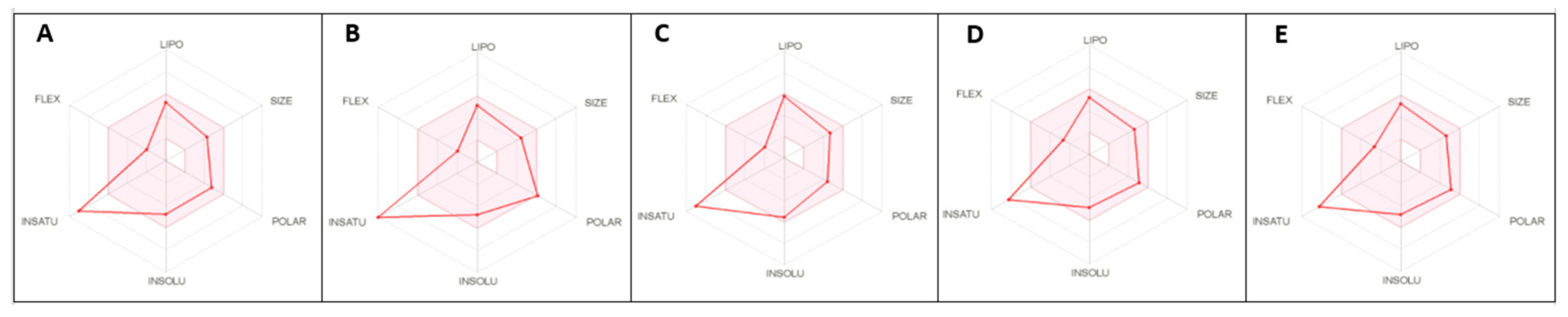 2.5. ADME Predictions Confirm the Drug-Like Properties of Compounds