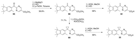 6.37. Methyl 2-(1-(1,1,3,3,6-pentamethyl-2,3-dihydro-1H-inden-5-yl)vinyl)pyrimidine-5-carboxylate (68)