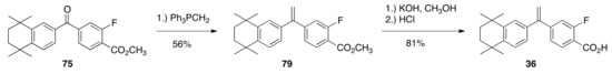 6.52. 2-fluoro-4-(1-(5,5,8,8-tetramethyl-5,6,7,8-tetrahydronaphthalen-2-yl)vinyl)benzoic Acid (36)