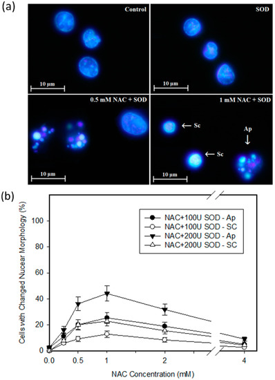 Here we report that NAC itself can induce extensive production of O2•− in both promyelocytic leukemia HL-60 and histiocytic lymphoma U937 cell lines. We found that O2•− alone does not induce cell death. Its cytotoxicity depends on the activity of ROS-modulating enzymes. The cytotoxicity of O2•− can be affected either by the inherent expression of superoxide dismutase 1 and 3 (SOD1, SOD3) and myeloperoxidase (MPO), or by the addition of extracellular SOD and catalase (CAT) to the growth medium. In addition, we also studied the morphological and biochemical features of cell death induced by NAC treatment.