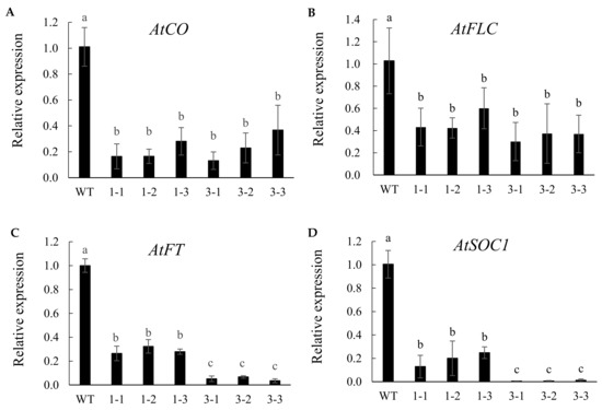 3.2. The Main Reason for Flowering Delay May Be Downregulated Expression of FT and SOC1