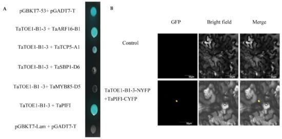 2.6. Identification of Interaction between Proteins TaTOE1-B1-3 and TaPIFI
