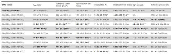 2.3.2. GRIN1 Variants Disturbing NMDAR Channel Gating Properties