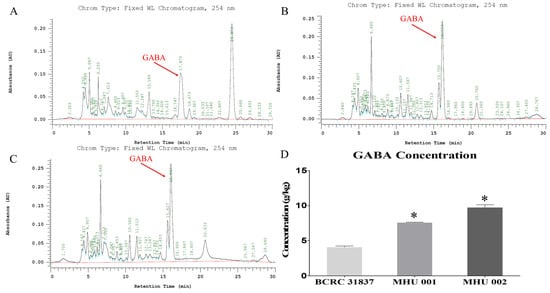 - Komatsuzaki, N.; Shima, J.; Kawamoto, S.; Momose, H.; Kimura, T. Production of γ-aminobutyric acid (GABA) by Lactobacillus paracasei isolated from traditional fermented foods. Food Microbiol. 2005, 22, 497–504. [Google Scholar] [CrossRef]