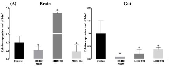 - Bercik, P.; Denou, E.; Collins, J.; Jackson, W.; Lu, J.; Jury, J.; Deng, Y.; Blennerhassett, P.; Macri, J.; McCoy, K.D.; et al. The intestinal microbiota affect central levels of brain-derived neurotropic factor and behavior in mice. Gastroenterology 2011, 141, 599–609.e3. [Google Scholar] [CrossRef] [PubMed]