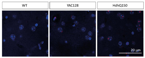 - Jansen, A.H.P.; Van Hal, M.; Kelder, I.C.O.D.; Meier, R.; De Ruiter, A.-A.; Schut, M.H.; Smith, D.L.; Grit, C.; Brouwer, N.; Kamphuis, W.; et al. Frequency of nuclear mutant huntingtin inclusion formation in neurons and glia is cell-type-specific. Glia 2016, 65, 50–61. [Google Scholar] [CrossRef] [PubMed]