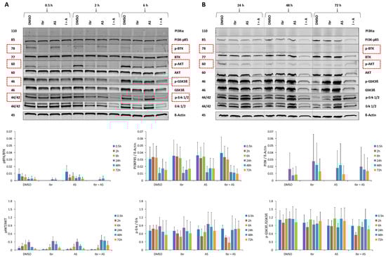 2.6. Single or Combined Ibrutinib and AS-605240 Reduce the Ratio of Phosphorylated and Total Forms of Target Proteins of CLBL-1