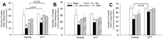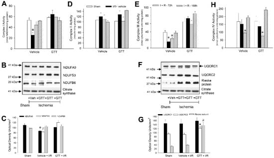 2.6. GTT Treatment Preserves Activities of Complexes I and III after Ischemia/Reperfusion Injury