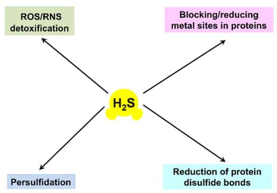 - Li, Q.; Lancaster, J.R., Jr. Chemical foundations of hydrogen sulfide biology. Nitric Oxide 2013, 35, 21–34. [Google Scholar] [CrossRef]
