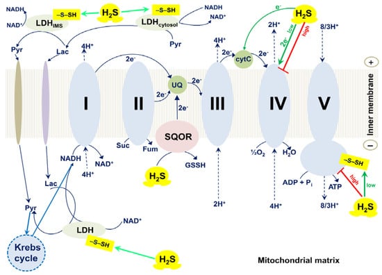 - Murphy, B.; Bhattacharya, R.; Mukherjee, P. Hydrogen sulfide signaling in mitochondria and disease. FASEB J. 2019, 33, 13098–13125. [Google Scholar] [CrossRef] [PubMed]