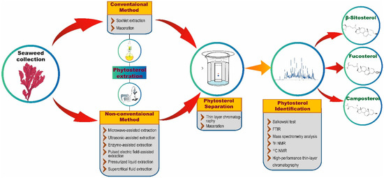 Through various techniques, the sterol profiling of diverse seaweeds from different regions has already been done by many research groups, which has subsequently helped to gratify the demand for phytosterols in the global market. By uncovering the concentration of diverse sterols in different seaweeds of different regions during various seasons, the optimal techniques and suitable seaweeds could be easily identified for the preparation of particular phytosterols in large quantities. Furthermore, the extraction, isolation and analytical techniques are continually evolving, which simplifies the overall preparation process of phytosterols eventually and also proves to be more competent, fast and eco-friendly than conventional techniques.