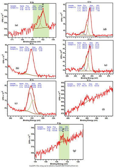 XPS measurements were performed using a Kratos Supra X-ray photoelectron spectrometer (Kratos Analytical, Manchester, UK) with a monochromatic Al Kα X-ray source (1486 eV). The area of analysis was 300 × 700 µm. The survey spectra were acquired at pass energy of 160 eV. High-resolution scans for C 1s, N 1s, O 1s, Au 4f, S 2p, and P 2p spectral bands were collected over appropriate energy ranges. All XPS spectra were analyzed and curve-fitted using the Casa XPS software; all spectra were calibrated relative to the C 1 s signal at a binding energy of 285.0 eV. Measurements were repeated twice, and the errors quoted in the numerical data represent the standard deviations.