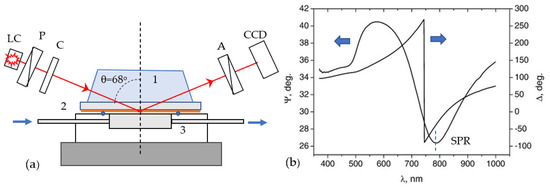 - Nabok, A.; Tsargorodskaya, A. The method of total internal reflection ellipsometry for thin film characterisation and sensing. Thin Solid Films 2008, 516, 8993–9001. [Google Scholar] [CrossRef]