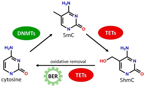 - Shen, L.; Song, C.-X.; He, C.; Zhang, Y. Mechanism and Function of Oxidative Reversal of DNA and RNA Methylation. Annu. Rev. Biochem. 2014, 83, 585–614. [Google Scholar] [CrossRef] [PubMed]