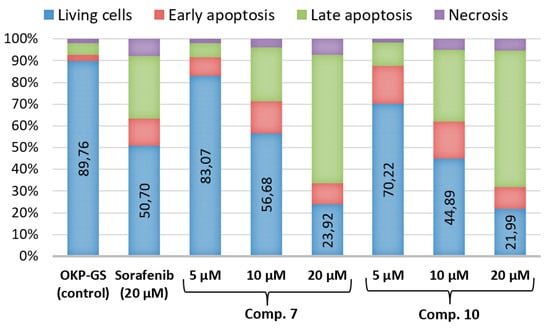 2.4. Cell Apoptosis Assay of Compounds 7 and 10