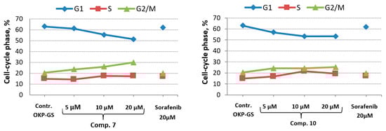 2.5. In Vitro Cell Cycle Effects of Compounds 7 and 10