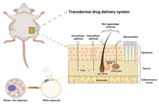 People generally have a low level of awareness of obesity, and they think that there is no need for drug treatment or understand the side effects of drugs, resulting in resistance to long-term medication. Therefore, the development of external anti-obesity drugs with low side effects may have more extensive research and application prospects. TDDS has the advantages of low dose, high bioavailability, low side effects, and easy application, so it is very suitable for delivering anti-obesity drugs. The high targeting of TDDS also seems to show great potential for the reduction of local subcutaneous AT [197]. In order to improve the role of agents in anti-obesity and avoid the adverse effects caused by defects in the drug delivery system, some scholars began to study the transdermal delivery of anti-obesity agents.