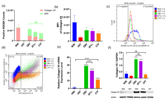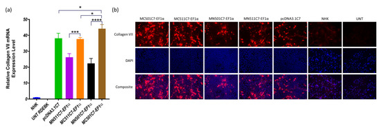 2.3. Comparison of Type VII Collagen Expression Level under CMV, C7P and EF1α Promoters
