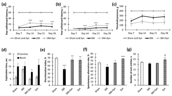 2.1. Synaptamide Improves Behavioral Parameters in Neuropathic Pain
