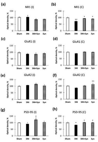 2.6. Neuropathic Pain and Treatment Alter the Hippocampal Level of Glutamate Receptors and PSD-95
