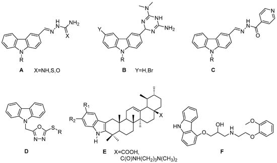 - Głuszyńska, A. Biological potential of carbazole derivatives. Eur. J. Med. Chem. 2015, 94, 405–426. [Google Scholar] [CrossRef] [PubMed]