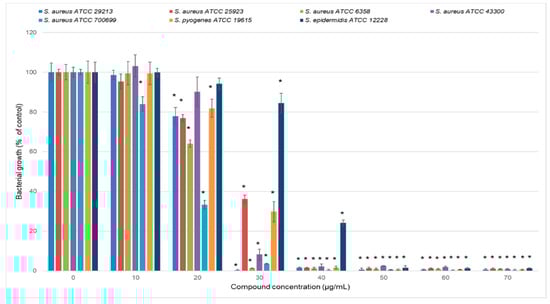 | S. epidermidis ATCC 12228 | 50 | 70 |