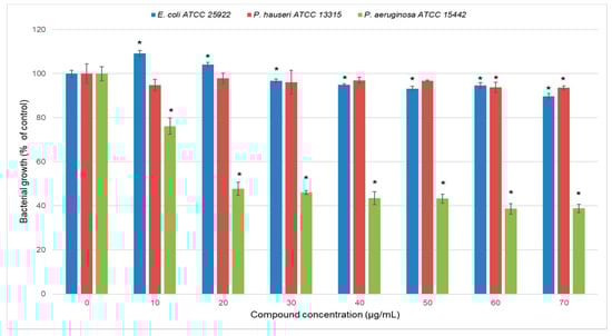 | P. aeruginosa ATCC 15442 | >70 | >70 |
