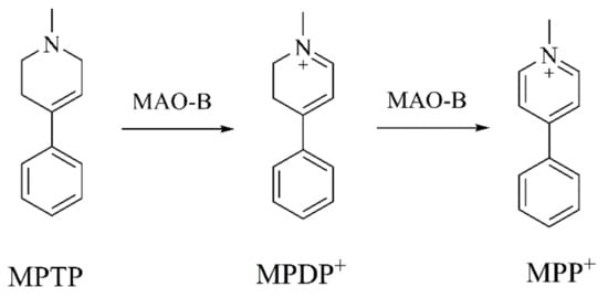 - Fries, D.S.; Devries, J.; Hazelhoff, B.; Horn, A.S. Synthesis and Toxicity toward Nigrostriatal Dopamine Neurons of l-Methyl-4-phenyl-l,2,3,6-tetrahydropyridine (MPTP) Analogues. J. Med. Chem. 1986, 29, 424–427. [Google Scholar] [CrossRef]