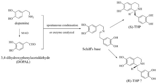 - Sango, K.; Maruyama, W.; Matsubara, K.; Dostert, P.; Naoi, M. Enantio-selective occurrence of (S)-tetrahydropapaveroline in human brain. Neurosci. Lett. 2000, 283, 224–226. [Google Scholar] [CrossRef]