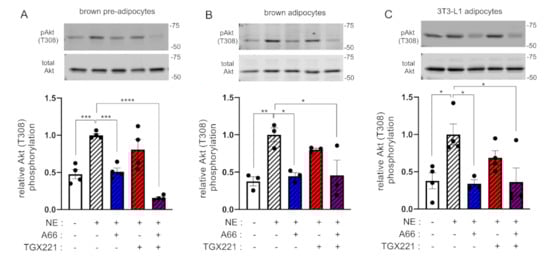 2.3. p110α Is Preferentially Activated over p110β by β-AR in Adipocytes