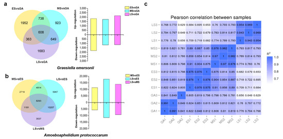 2.2. A Global View of Transcriptomic Analysis of Microalga and Endoparasite during Their Interaction