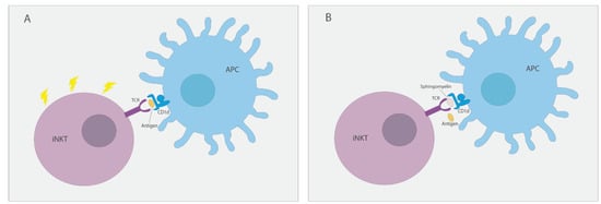 - Pereira, C.S.; Sa-Miranda, C.; De Libero, G.; Mori, L.; Macedo, M.F. Globotriaosylceramide inhibits iNKT-cell activation in a CD1d-dependent manner. Eur. J. Immunol. 2016, 46, 147–153. [Google Scholar] [CrossRef] [PubMed]