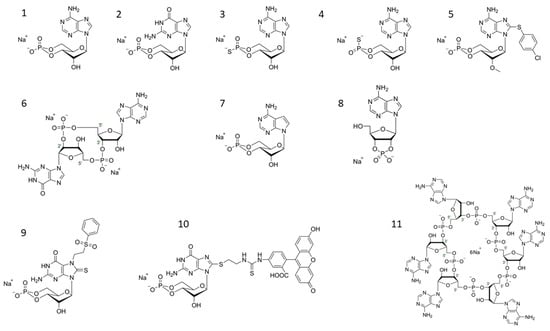 - Rothermel, J.D.; Stec, W.J.; Baraniak, J.; Jastorff, B.; Botelho, L.H. Inhibition of glycogenolysis in isolated rat hepatocytes by the Rp diastereomer of adenosine cyclic 3′,5′-phosphorothioate. J. Biol. Chem. 1983, 258, 12125–12128. [Google Scholar] [CrossRef]