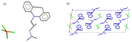 - Kamel, L.T.; El Essawi, Μ.; Wartchow, R.; Berthold, H.J. Crystal structure of bis [(10, 11-dihydro-dibenzo [b, f lazepin-5-yl)-2-methyl-propyl-dimethyl-ammonium] tetrachlorocuprate (II),(C2OH27N2) 2 [CUCI4]. Ζ. Kristallogr. NCS 2001, 216, 359–360. [Google Scholar]