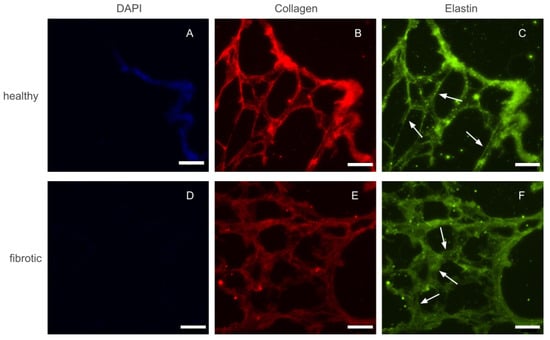 41]. Indeed, such is also our observation for lung ECM, both for healthy and fibrotic samples. Accordingly, we hypothesize that the