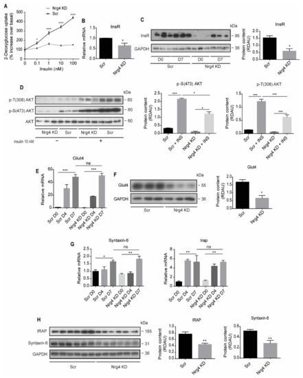 2.2. Nrg4-Deficient Adipocytes Have Impaired Insulin-Stimulated Glucose Transport