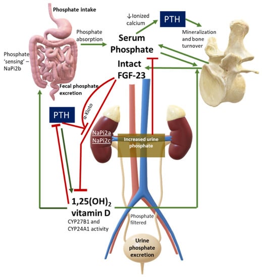 - Christov, M.; Jüppner, H. Phosphate homeostasis disorders. Best Pract. Res. Clin. Endocrinol. Metab. 2018, 32, 685–706. [Google Scholar] [CrossRef]