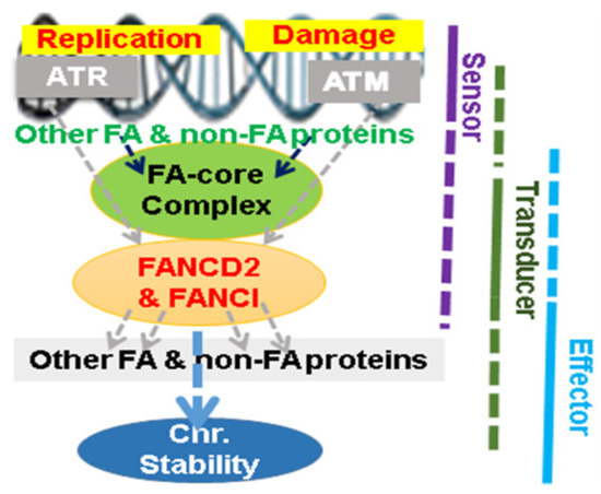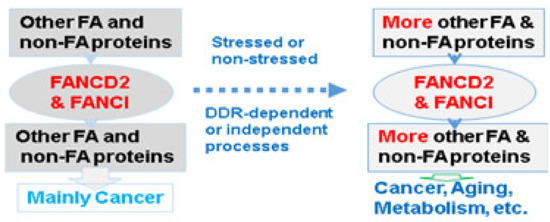- Zhang, J.; Zhao, D.; Wang, H.; Lin, C.J.; Fei, P. FANCD2 monoubiquitination provides a link between the HHR6 and FA-BRCA pathways. Cell Cycle 2008, 7, 407–413. [Google Scholar] [CrossRef] [PubMed]