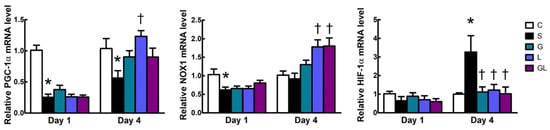 2.5. Muscle mRNA Expressions of Inflammatory and Mitochondrion-Related Genes
