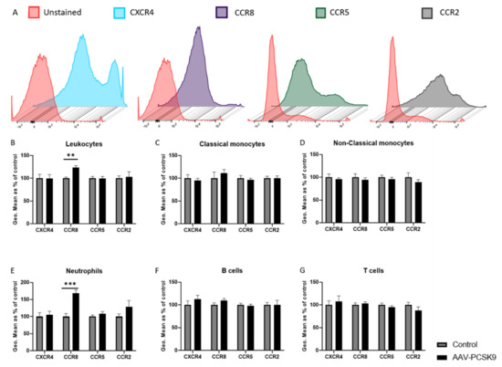 2.1. Overexpression of PCSK9 In Vivo Does Minimally Affect Leukocyte Chemokine Receptor Expression, Even though It Affects the Expression of Inflammatory Cytokines