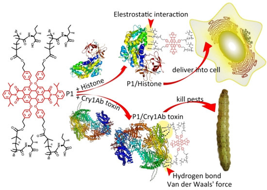 - Zheng, Y.; You, S.; Ji, C.; Yin, M.; Yang, W.; Shen, J. Development of an Amino Acid-Functionalized Fluorescent Nanocarrier to Deliver a Toxin to Kill Insect Pests. Adv. Mater. 2016, 28, 1375–1380. [Google Scholar] [CrossRef]