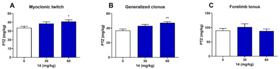 2.3. Effect on the Seizure Threshold in the ivPTZ Test in Mice