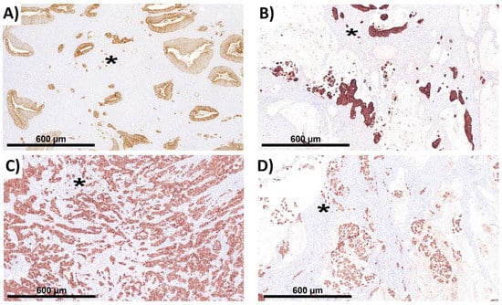 - Mouse anti-Cytokeratin Broad Spectrum (AE1 & AE3), Cat. No.: MSK019 (1 mL Konzentrat); MSK019-05 (0,5 mL Konzentrat); MSG019 (6 mL gebrauchsfertig). ZYTOMED Syst. Rev: A1015, Doc: DB_BMS006. 2015. Available online: https://www.zytomed-systems.de/storage/uploads/datasheets/de/BMS006_Gef.pdf (accessed on 1 March 2021).