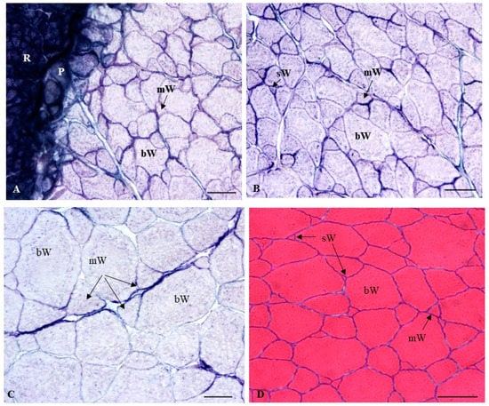 2.2.2. Histochemical Characterization of the Muscle Fibers