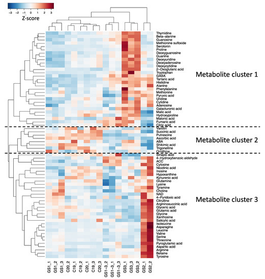 2.2. Clustering and Heat Map Based on the Metabolite Response in Each High-Temperature Treatment