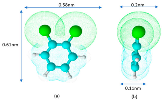 Schematically, the shape of the o-DCB molecule is represented in Figure 3.
