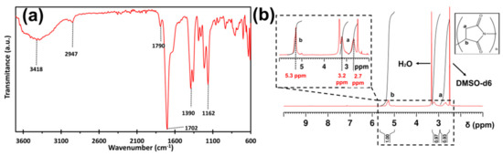 (a) FTIR and (b) 1 H NMR spectrum of PSI in DMSO-d6.