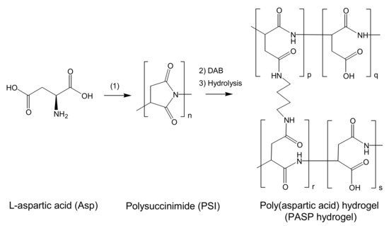 - Adelnia, H.; Blakey, I.; Little, P.J.; Ta, H.T. Hydrogels Based on Poly(aspartic acid): Synthesis and Applications. Front. Chem. 2019, 7, 755. [Google Scholar] [CrossRef] [PubMed]